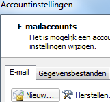 Klik in het Accountinstellingen menu op Nieuw… om de wizard te starten en te beginnen met het aanmaken van uw account.